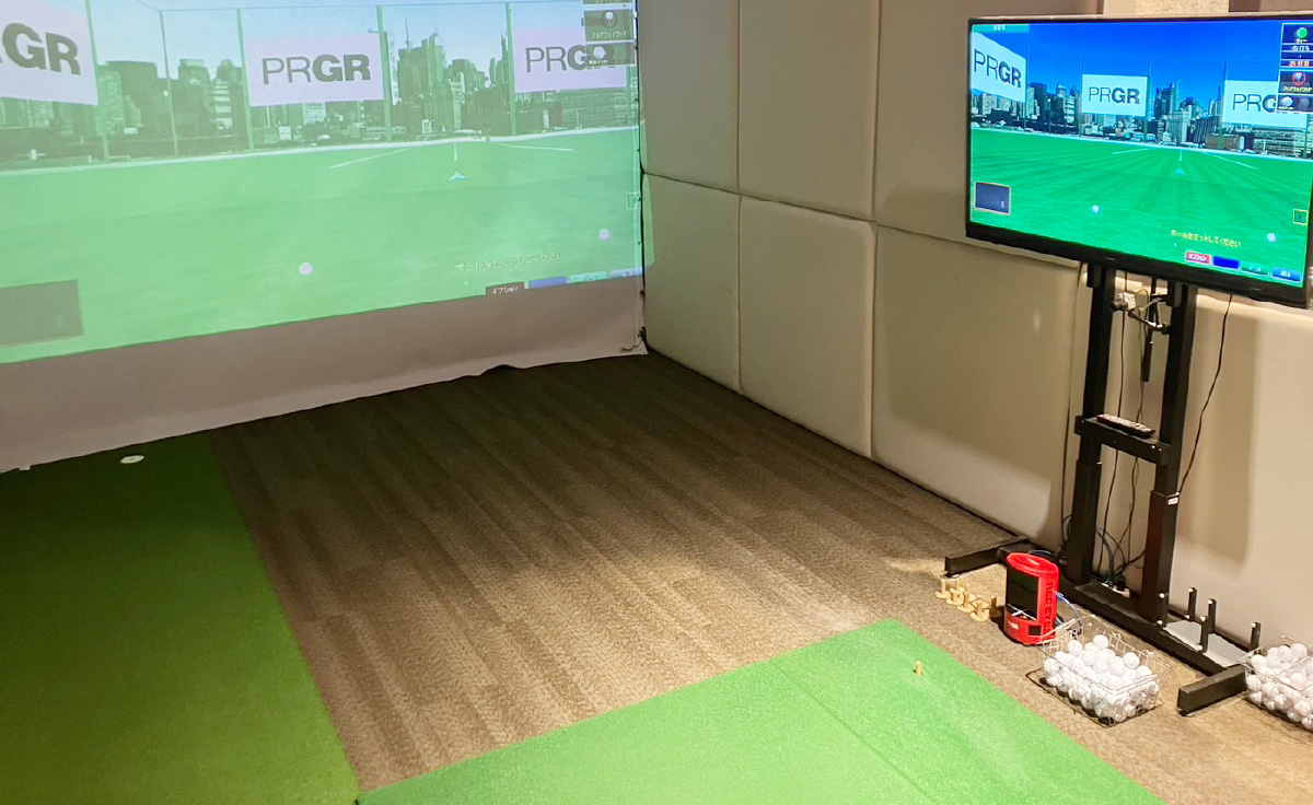 シューズ・クラブ(PRGR製品)は無料でレンタル可能です。解析ブース1打席、スクール打席4打席を完備。