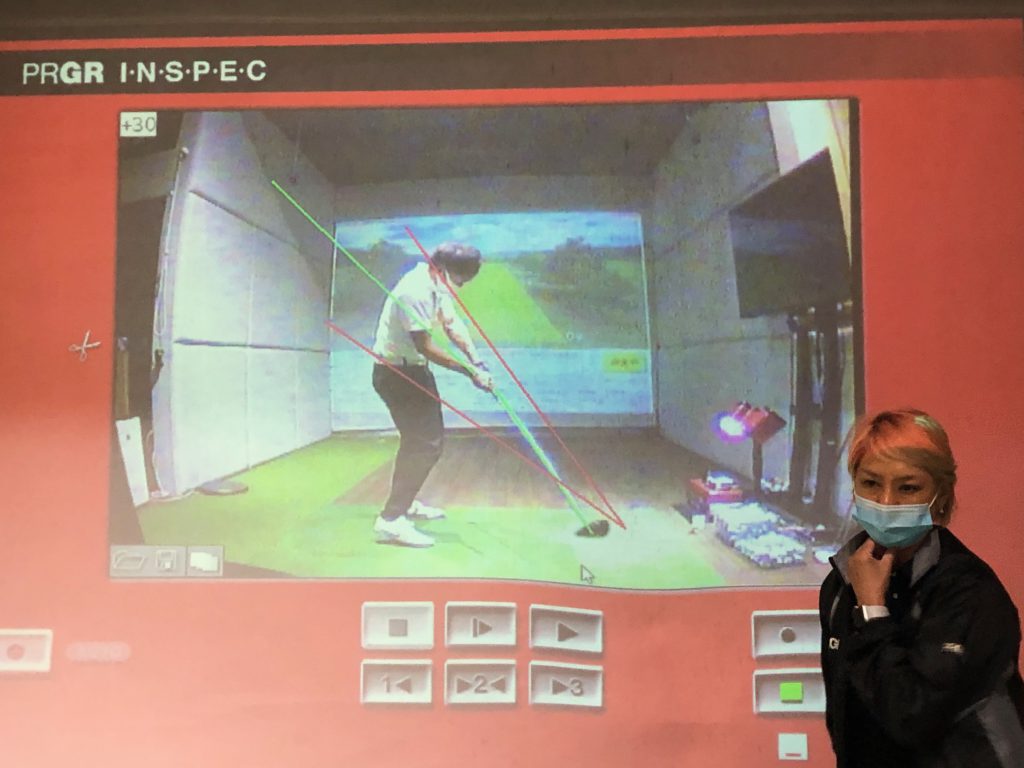 続いては【PRGR SWING-VIEW】で動画撮影したK君のスイングをチェック。