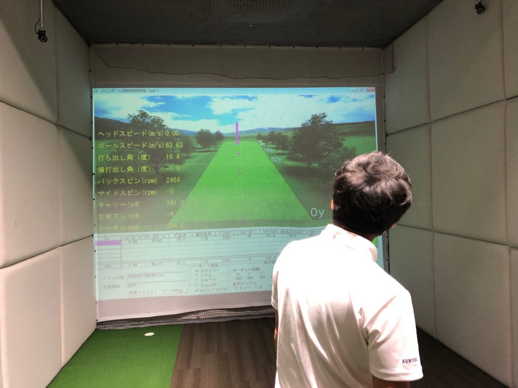次にドライバーを数発ショット。この時、弾道やスイングを計測します。