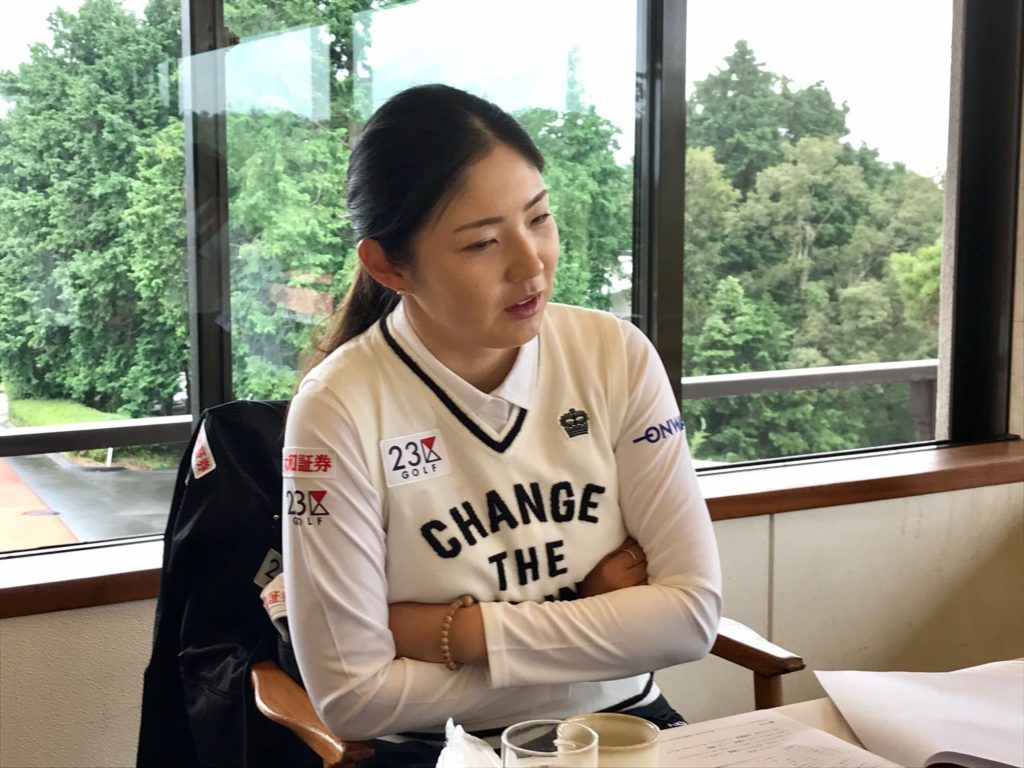 真剣な表情で話す辻プロ。プロになるとファン、スポンサーなど様々な応援が大きな力にもなれば、プレッシャーになることもあるようです。(ちなみにツアー開幕2戦目に開催していたPRGRレディスはコースも難しいし本当にプレッシャーだった。というのはここだけの話)