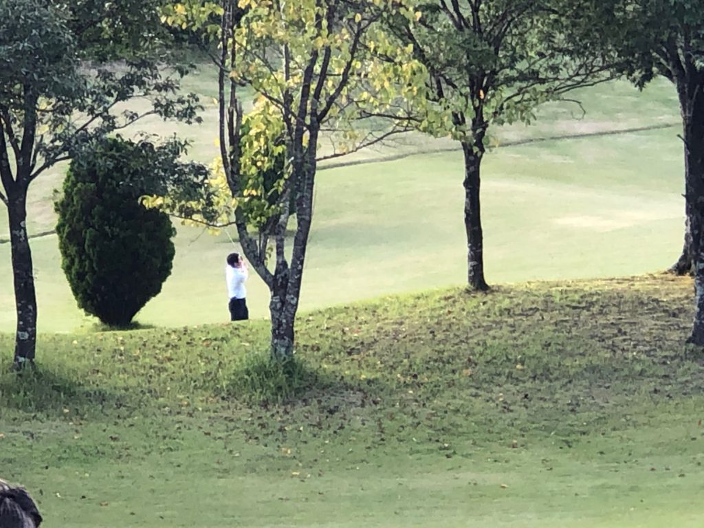 ショートホールで無類の強さを発揮するT君は、Q18がいい感じにトップしてピンに一直線。グリーンを越えていきましたが、実力から言えば最高の結果でしょう。
