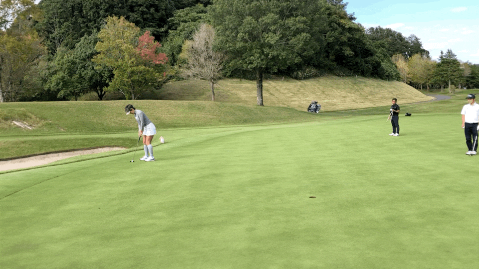 あわやバーディーというナイスパットでしたが、藤本プロは惜しくもパー。