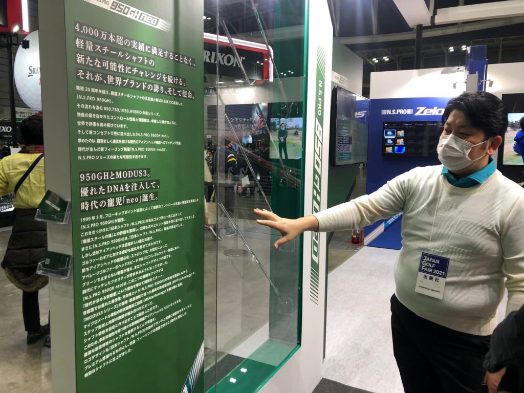 と、T君が案内されたのは軽量スチールシャフトの先駆けとして大ベストセラーとなったN.S.PRO 950GHのNEWモデル、N.S.PRO 950GH neoです。