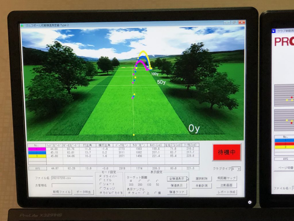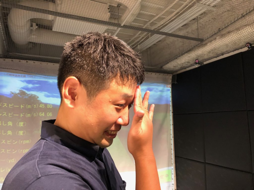 思わずF君も苦笑い。コースでは安定して250ヤードくらい飛ばしていたのに、相変わらずインドアではまったくダメ。インドア計測では神レベルの実力を誇るK君と真逆の性質です。