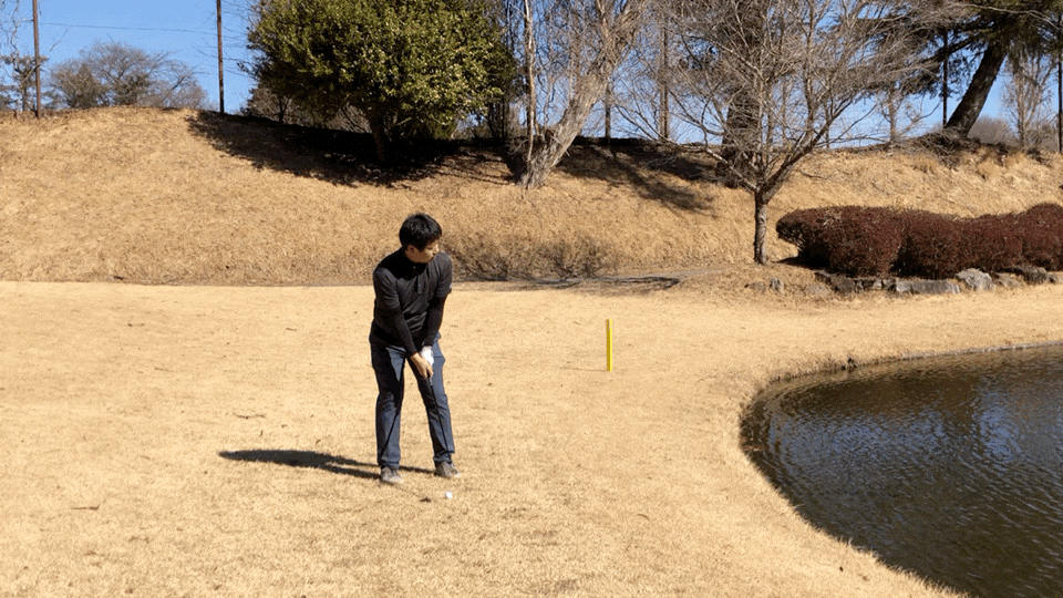 さらにアイアンを打ち、ゆったりとこちらに歩み寄るM君。