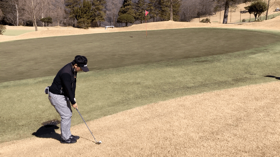 【トップトレーサー・レンジ】のバーチャルゴルフはパッティングが無く、スコアはパットの代わりに目標のピンまでアプローチでどれだけ寄せたかで決まります。