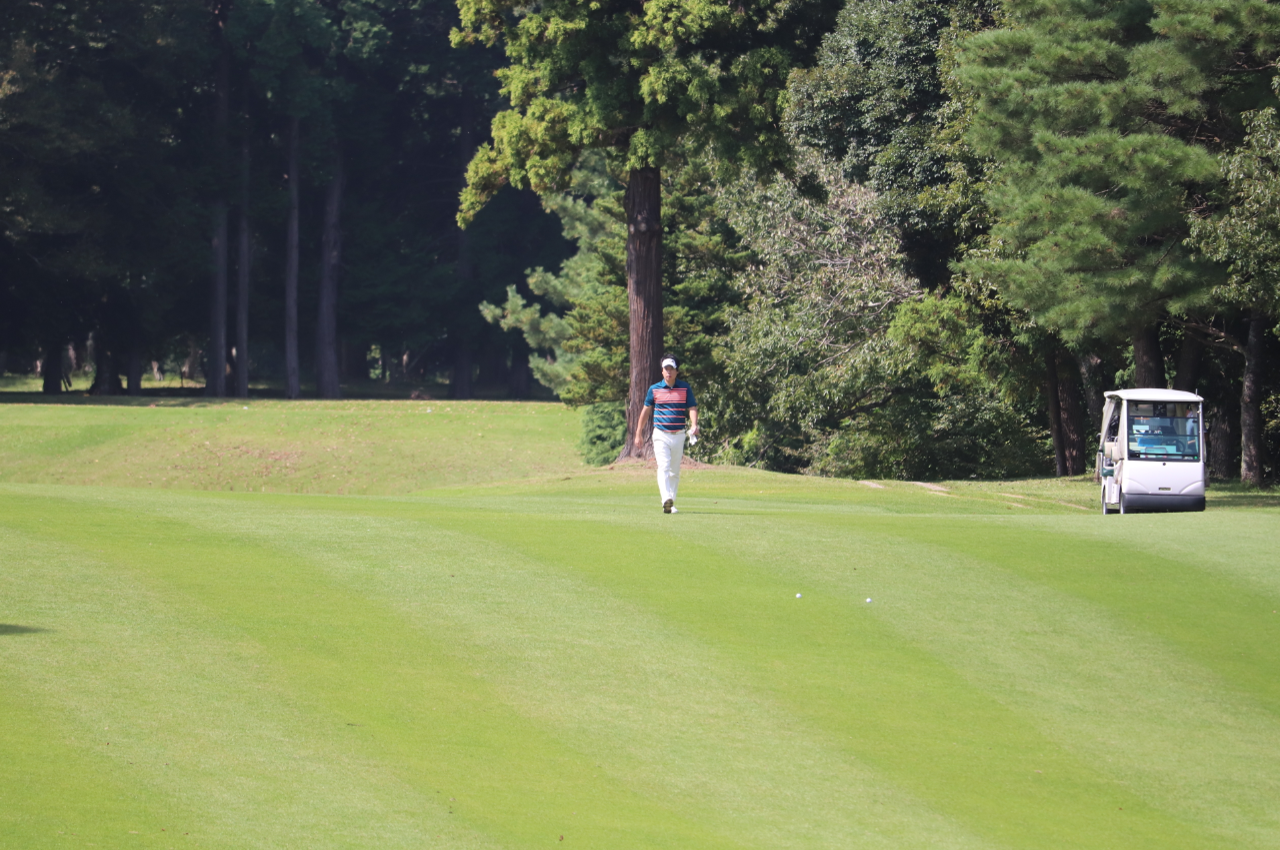 一方のK君は下を向きながらフェアウェイを歩いています。