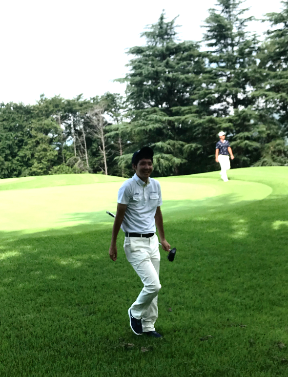 ※日経カップで着用したユニホームでなく、FOOTJOYのウェアで登場。日経カップ代表メンバーだった記憶はF君の脳内にはもう残っていないようです。