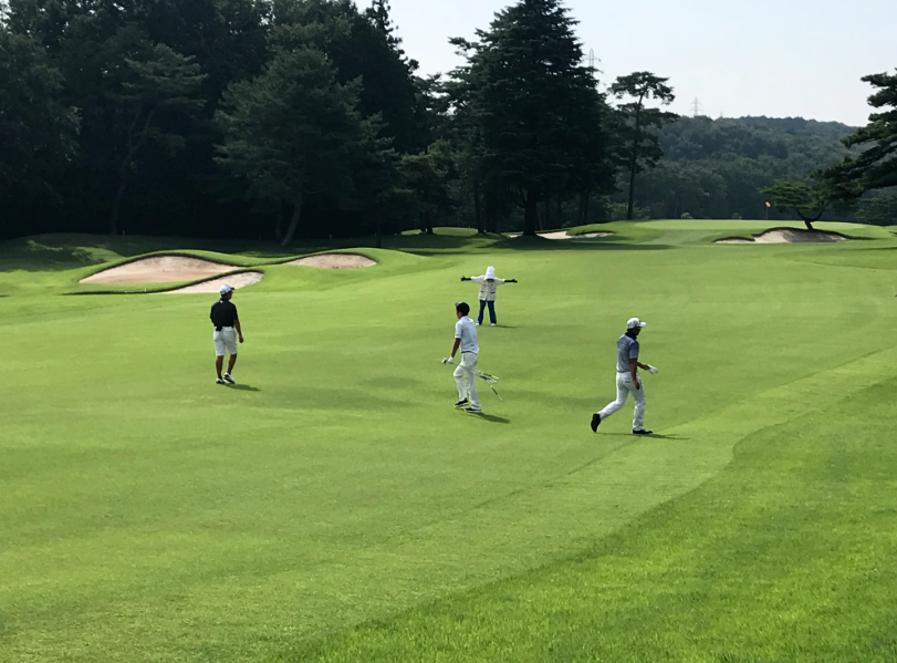 スタート時間まであと20分。F君は練習グリーンでパッティングし、グリーンの速さにタッチを合わせます。さすが幾多のトーナメントを開催してきた名門コース。グリーンコンディションは最高です。