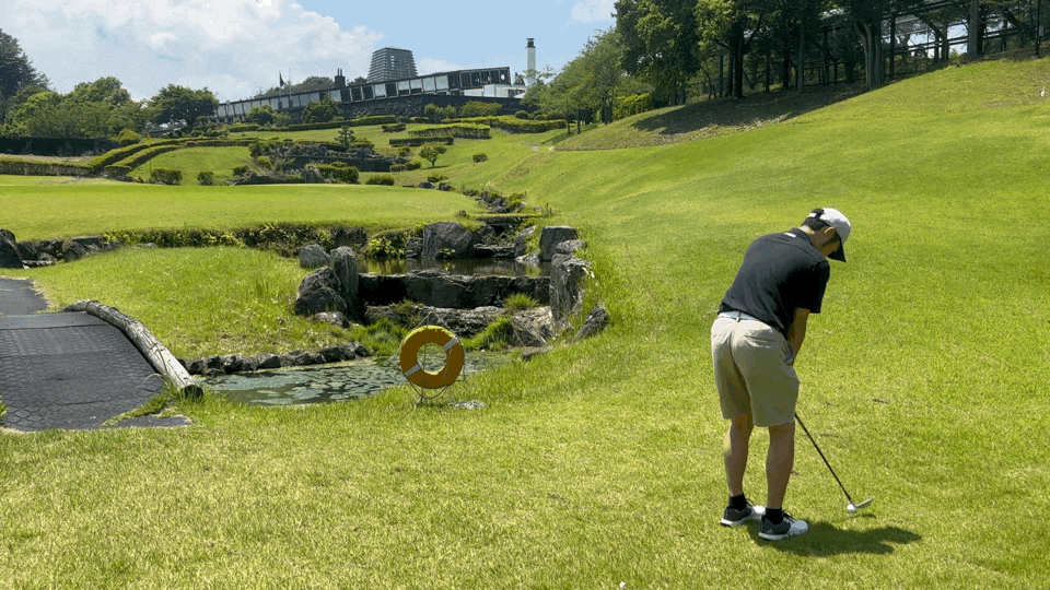 やってきたのは埼玉県にある某ゴルフ場。豪快な打ち下ろしやスリリングな谷越え、戦略的に配された池やクリーク、手入れの行き届いた高速グリーンなどが特徴の初心者ゴルファーが挑戦するには歯ごたえがありすぎるコースです。