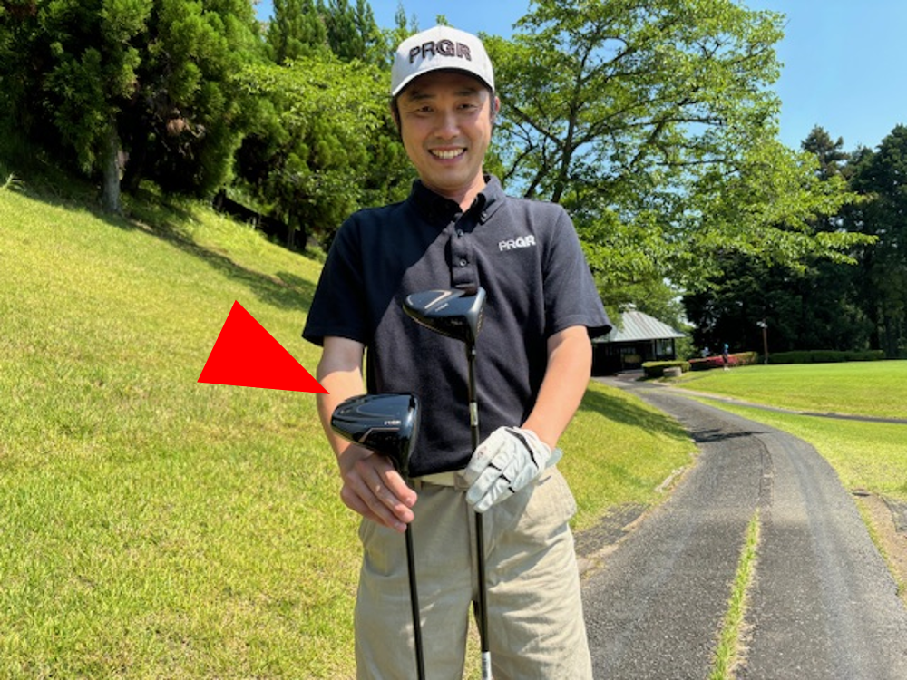 そうです!ルール適合外の高反発フェースと500cm³の巨大ヘッドのスーパーエッグ・エヴォリューションドライバ―を短くしたら、僕ら初心者ゴルファーでももっとやさしく飛ばせるんじゃないかということで、開発の人がテスト品を借してくれたんです