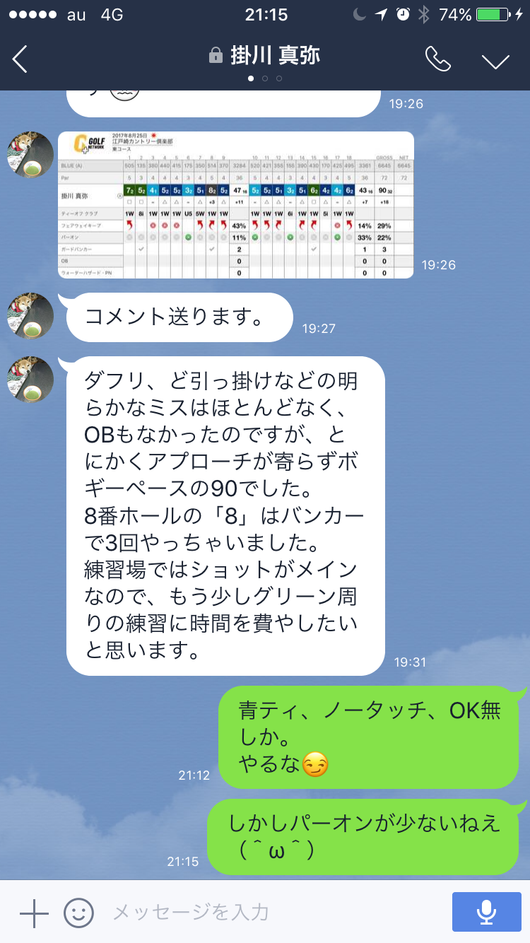 電話インタビューでK君に確認しましたが、ショット自体は今までより格段に良かったようなので、アプローチが悪くスコアにつながらなかったことをとても悔やんでいました。