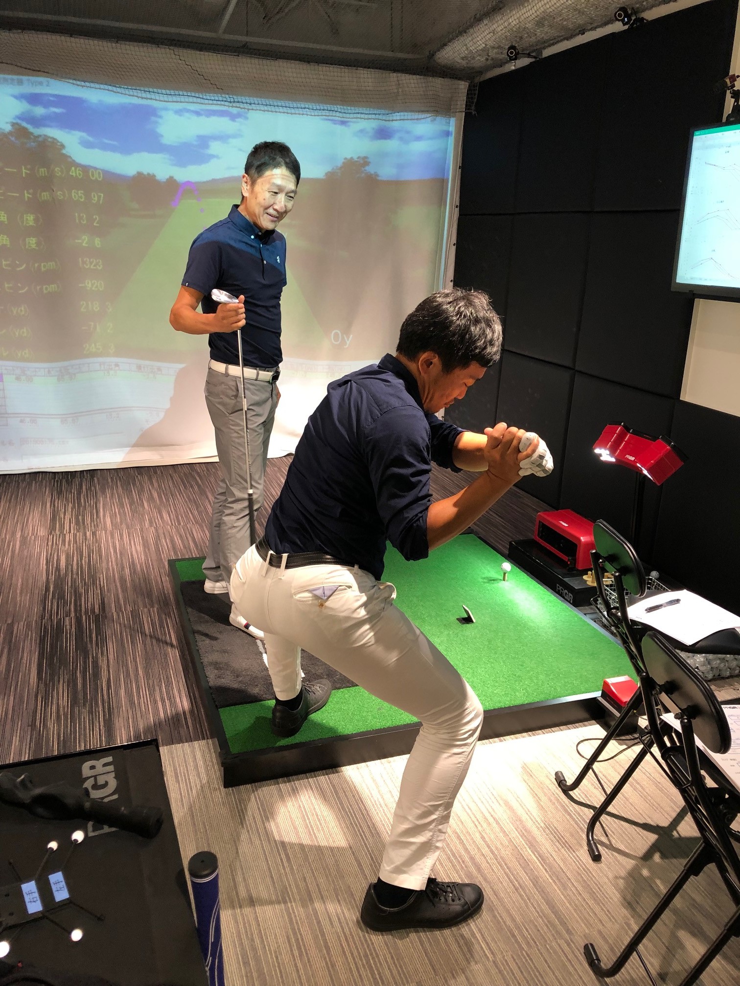 『そうだよね。ひとつひとつ画面で説明するから、まぁ座って。スイングの詳細な測定が出来てもどの数値が問題か、どのように取り組めば上達するのかを理解してもらわないと意味が無いからね。説明して理解していただくことが大事だから、スイングスキャンコースは通常のコースより長い90分になっているんだ。』