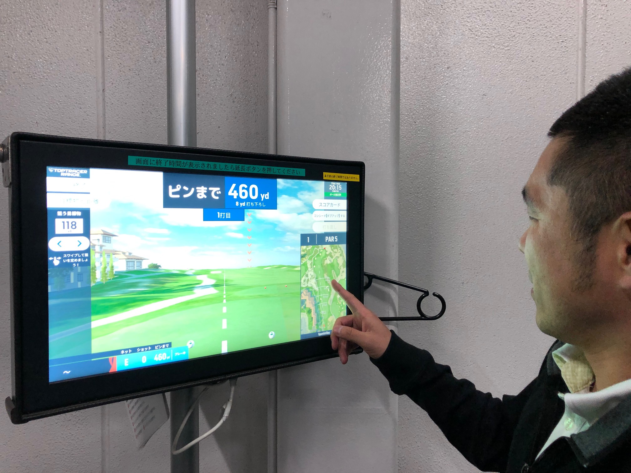 何やら設定を進めてゴルフコースを表示するT君。