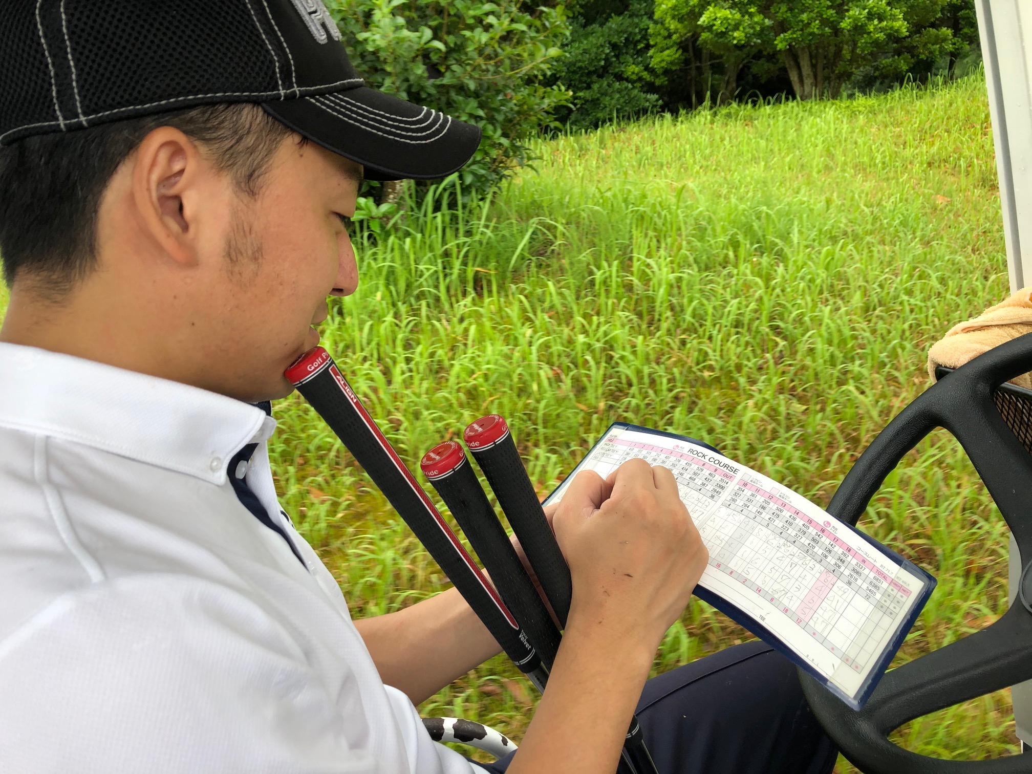 ライバルGさんも気になるK君の好調っぷり。こうしてあっという間に9ホールが終了。スコア集計してみると、、、
