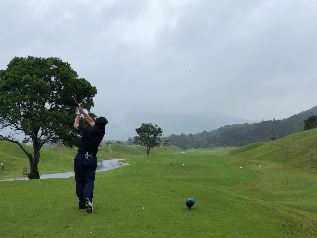 日経カップに向けてラウンド回数を重ねているK君ですがその全てが雨に見舞われています。雨ゴルフの難しさを身をもって知るK君はさらに難易度を増すであろうこのコンディションにテンション下がり気味。